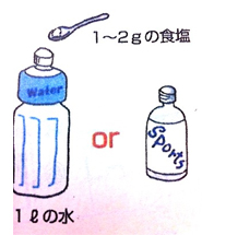 こまめに水分を補給することも大切です。軽い脱水状態ではのどの渇きは感じません。のどが渇く前から水分を補給しましょう。通常の水分補給はお茶、お水でよいです。 ヒトは暑い環境で3-4日経つと汗をかくための自律神経の反応が早くなって体温上昇を防ぐのが上手くなり、さらに3-4週経つと汗に無駄な塩分を出さないようなホルモンがでて塩分欠乏による症状が出るのを防ぎます。このようなことから、梅雨の合間に急に気温が上がったりまだ体が暑さに慣れていないと熱中症になりやすくなります。暑さに対する慣れ(暑熱順化)は日常運動することで獲得でき、日頃からウォーキングなどで汗をかく習慣を身に付けておくと熱中症にかかりにくくなります。